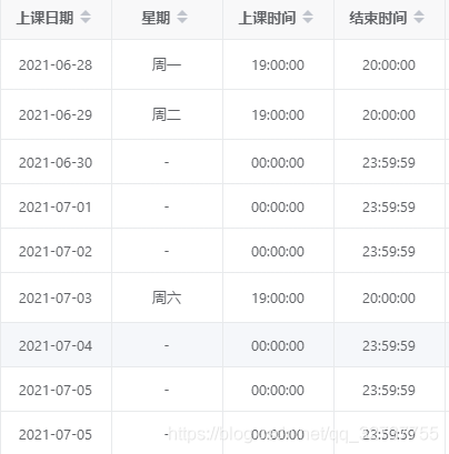 (例子,只用来展示数据结构)假如总共5节课时,从6-25日开始排课,每周一、周六上课: