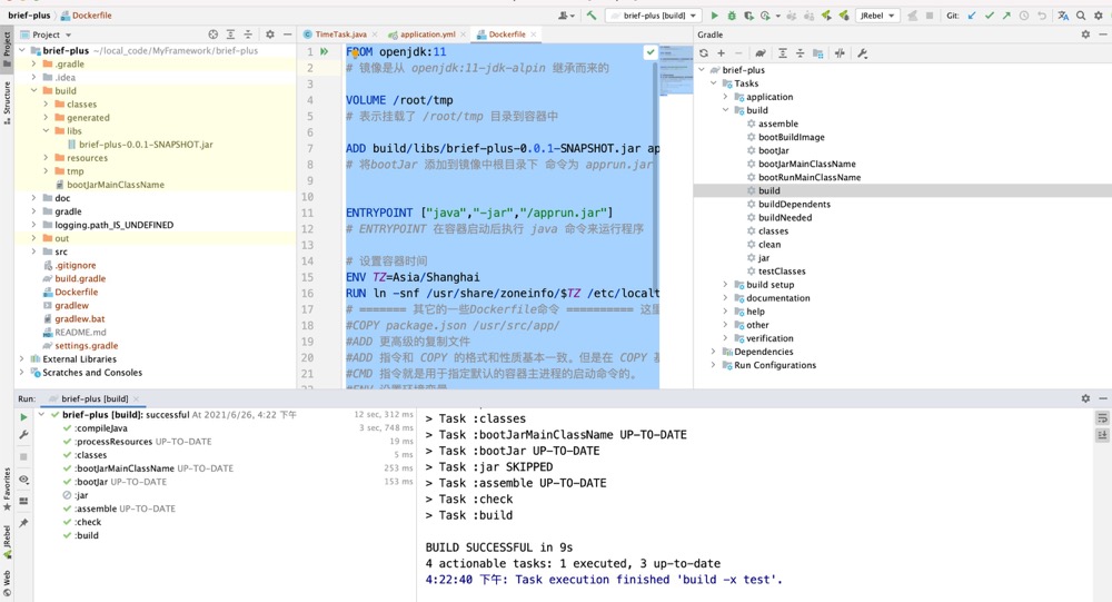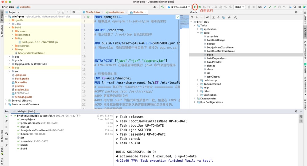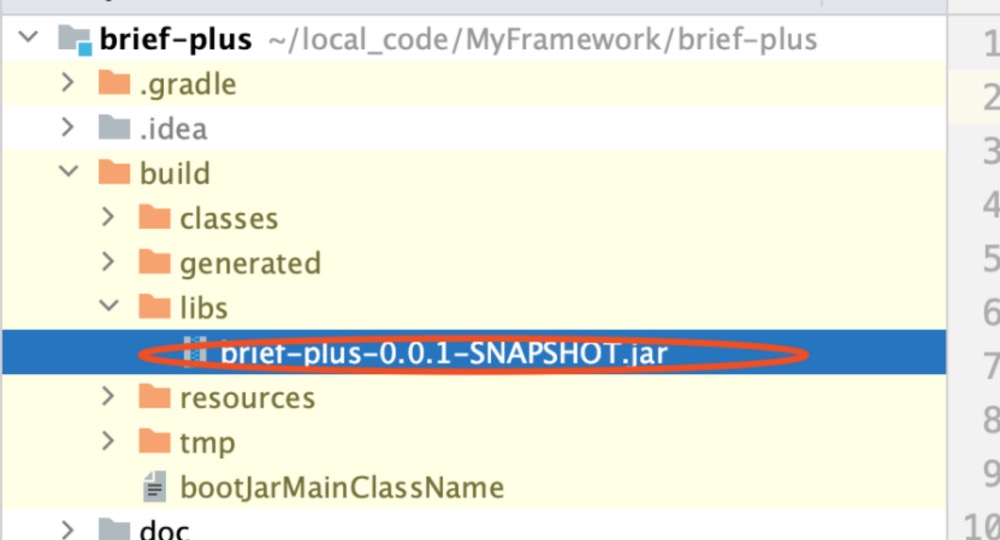 主要注意build/libs/brief-plus-0.0.1-SNAPSHOT.jar apprun.jar 这句话。 我是用的gradle编译后的文件位于build/libs/ 目录下 如下图: