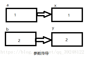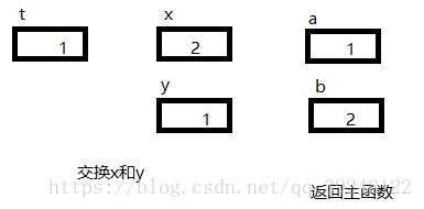 第一个swap1函数运行结果是:x=2 y=1.但是第一个函数的形参是(int x,int y),实参是(int a,int b)。因为实参可以影响形参,而形参不可以影响实参。所以a,b的值是不变的。如图: