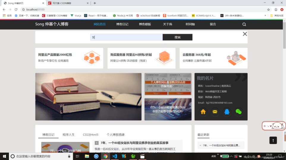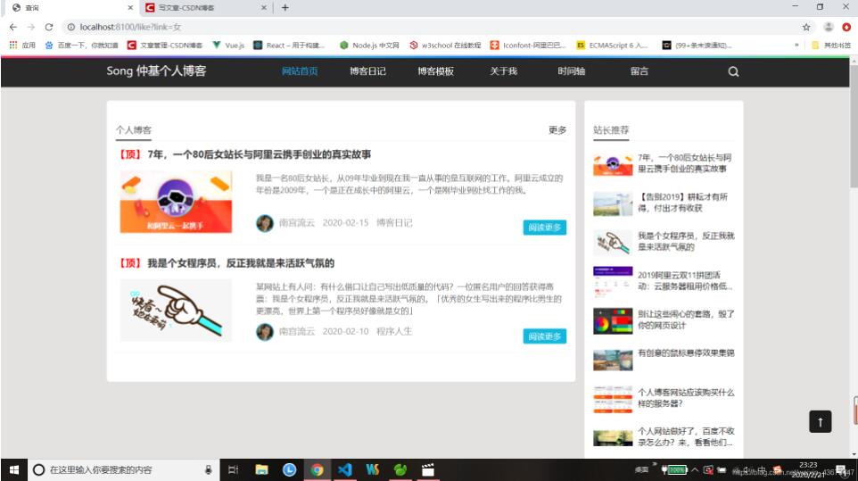 点击导航栏中的搜索图,出现搜索框,从而进行文章的模糊查询