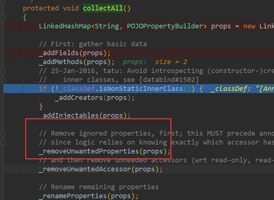 直接找到:com.fasterxml.jackson.databind.introspect.POJOPropertiesCollector#collectAll这个方法:
