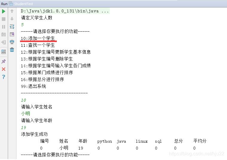System.out.println("10:添加一个学生");