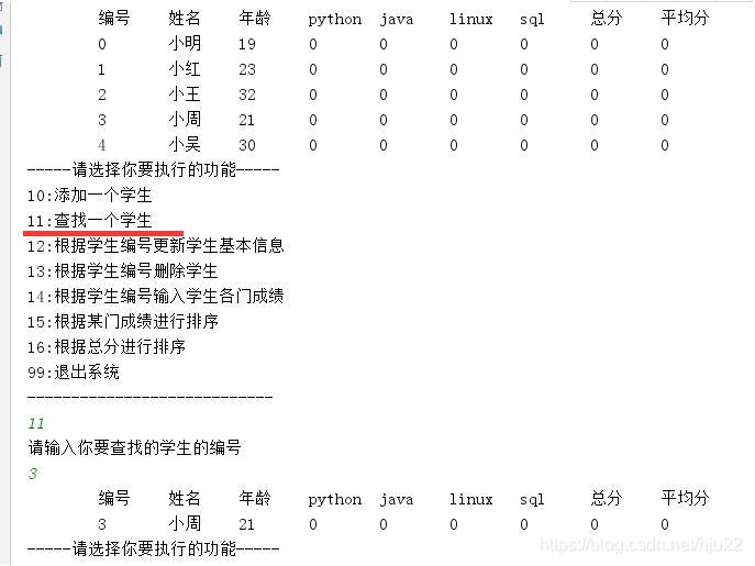 }else if(number==11){//11:查找一个学生