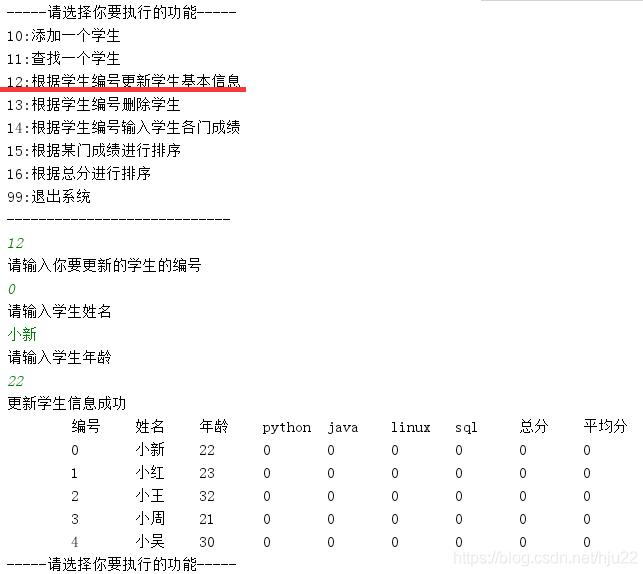 System.out.println("12:根据学生编号更新学生基本信息");