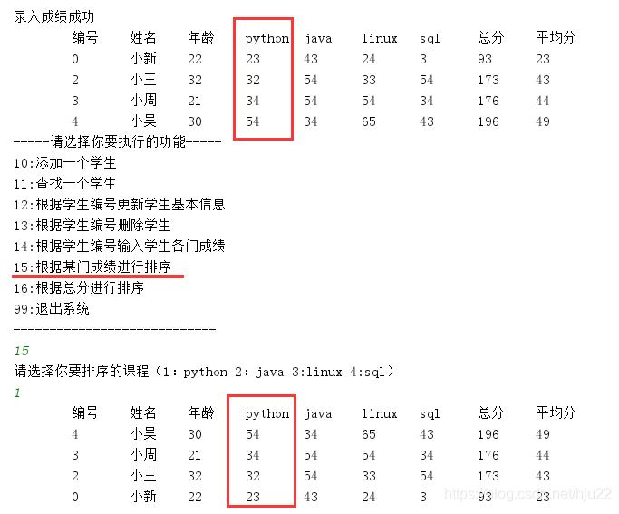 }else if (number==15){//15:根据某门成绩进行排序