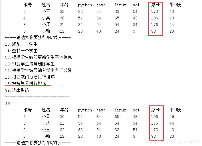 }else if (number==16){//16:根据总分进行排序