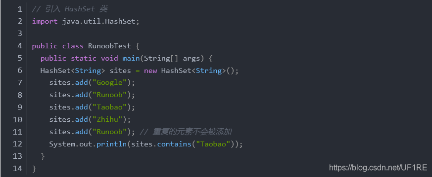 HashSet 类提供类很多有用的方法,添加元素可以使用 add() 方法: