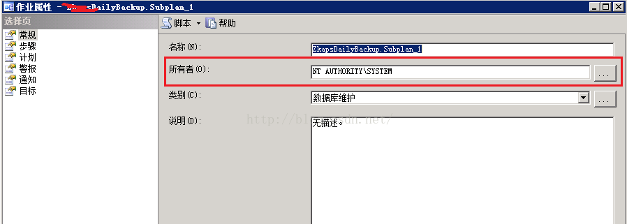 这应是上次重命名系统管理员帐户导致的,尝试重新选择作业所有者和重建作业,都不好用,最终将所有者更改为NT AUTHORITY\SYSTEM,作业成功执行。