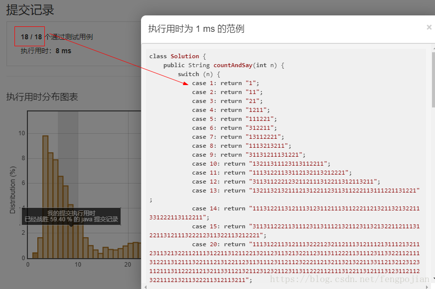 但是在提交之后,我看到了用时1ms的范例。简直是“投机取巧”的典型......因为测试用例就18个,所以switch cash写了18中情况。这真的是太聪明了!!!