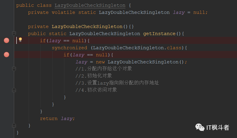 private volatile static LazyDoubleCheckSingleton lazy = null;
