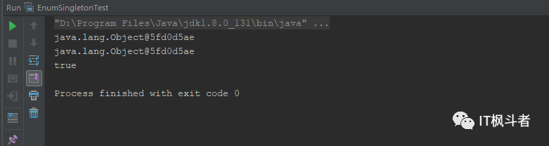 我们发现枚举类型其实通过类名和 Class 对象类找到一个唯一的枚举对象。因此,枚举对象不可能被类加载器加载多次。那么反射是否能破坏枚举式单例呢?来看一段测 试代码: