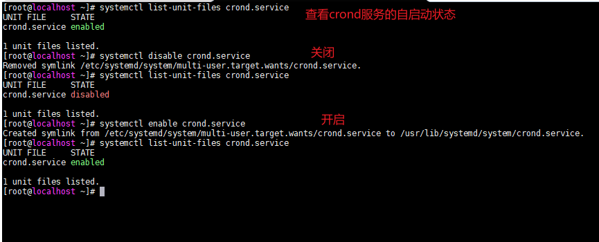 • systemctl list-unit-files 服务名.service:查询指定服务器开机启动状态