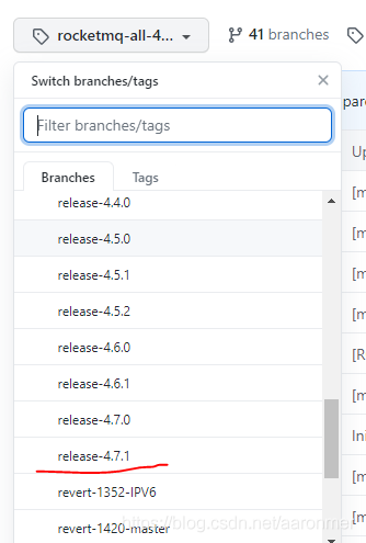 例如使用的rocketmq版本为4.7.1,则下载路径为https://github.com/apache/rocketmq/tree/release-4.7.1
