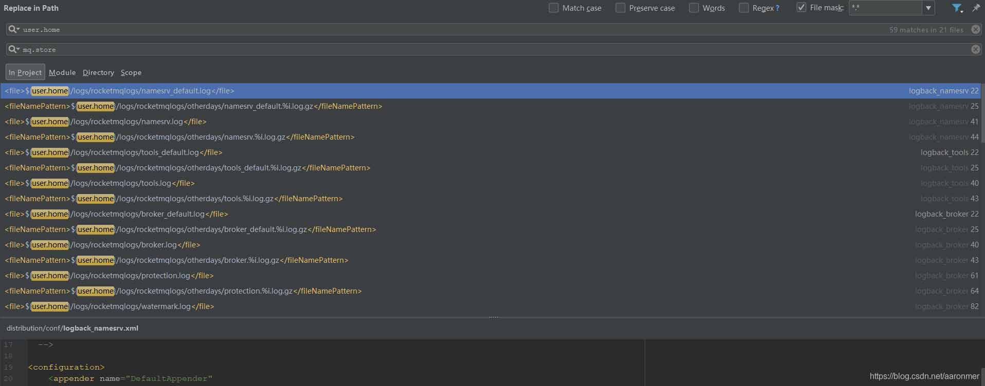 我们用自定义参数mq.store代替默认的user.home,全局替换user.home为mq.store