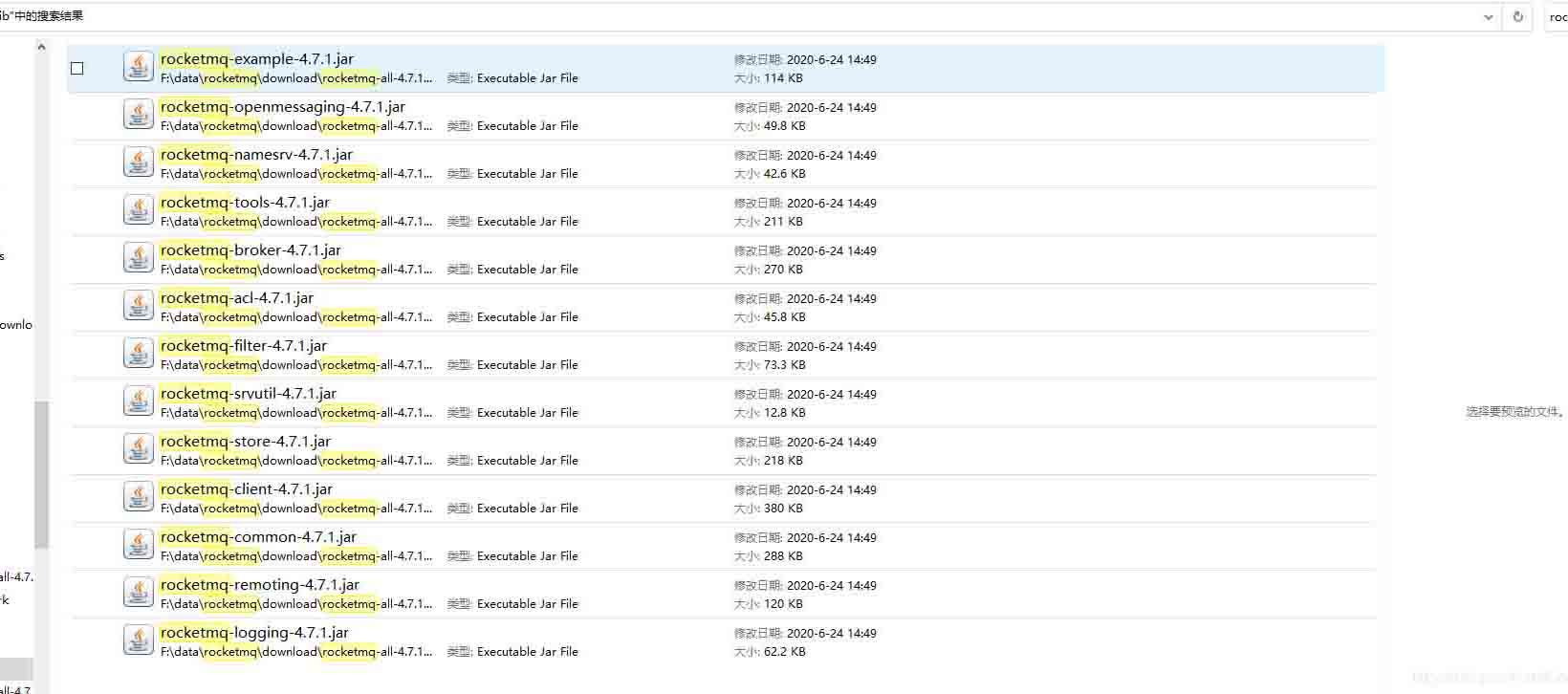 打包完成后根据rocketmq运行需要替换对应的jar包,找到ROCKETMQ_HOME\lib目录,搜索rocket