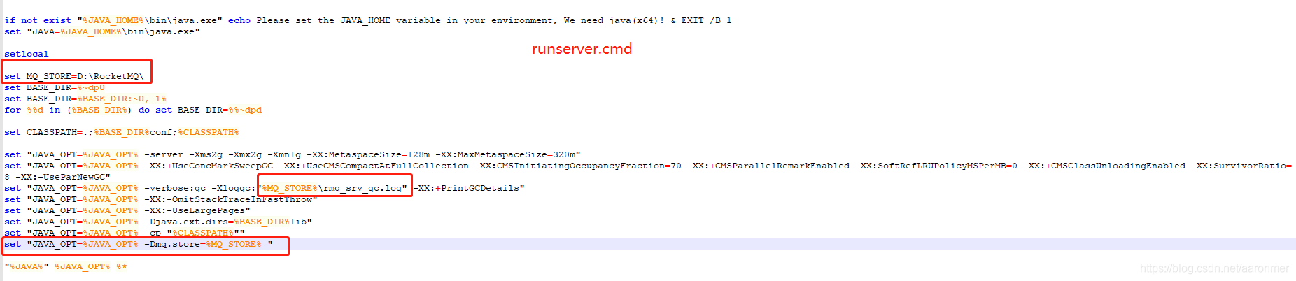 在rocketmq的bin目录下,找到并修改runbroker.cmd 和 runserver.cmd,如果是linux系统下使用,修改对应的.sh文件即可