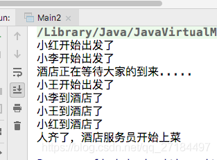 System.out.println("人齐了,"+Thread.currentThread().getName() +"服务员开始上菜");