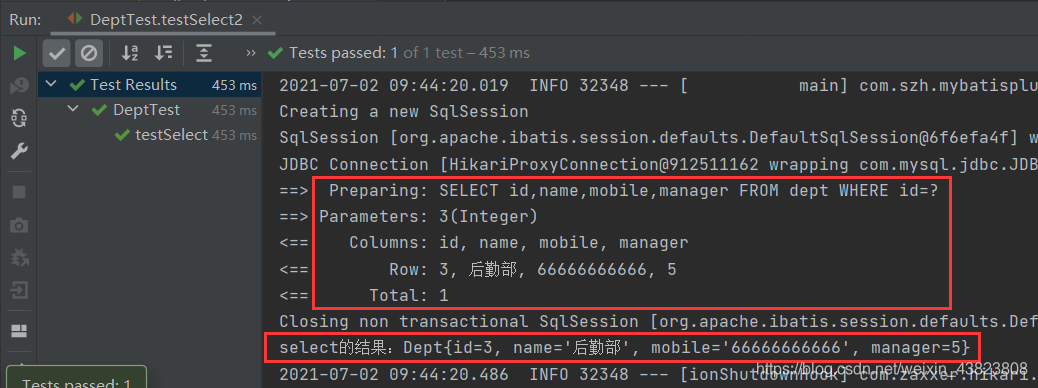 System.out.println("select的结果:" + dept1);