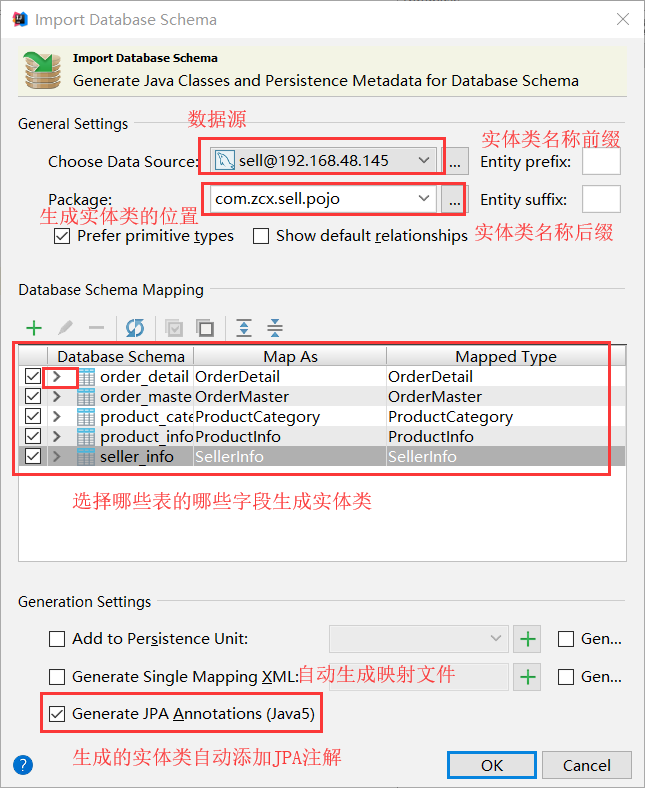 2、生成实体类的设置