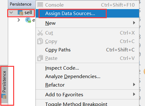 在Persistence视图中,右键项目名 → Assign Data Sources