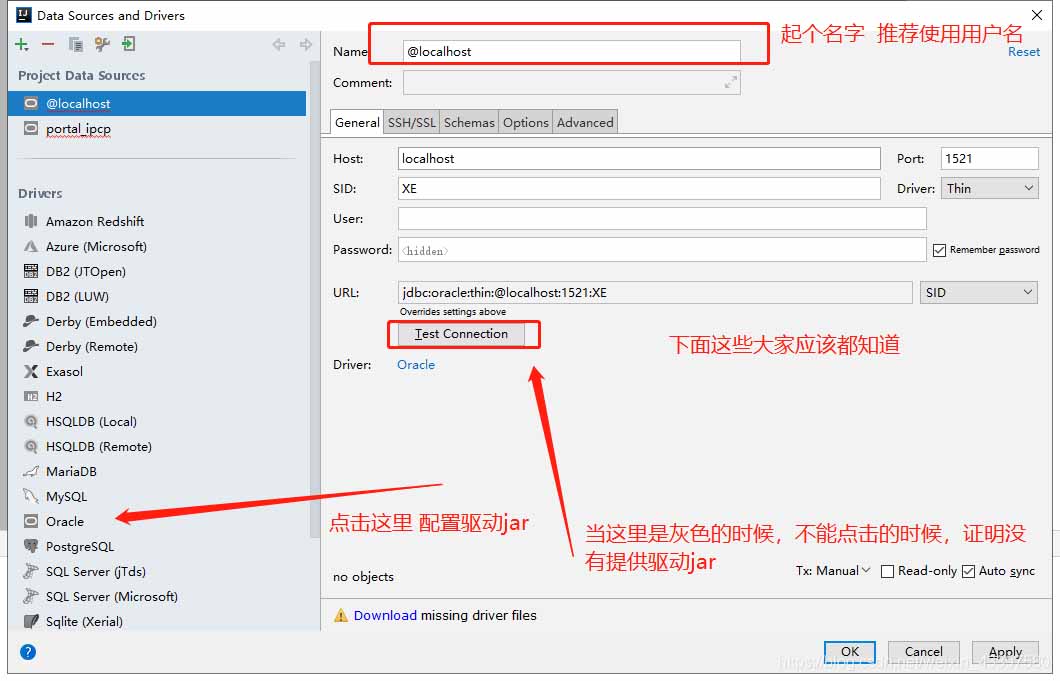 注意一下,这里不配置驱动jar的话,不能点击Test Connection