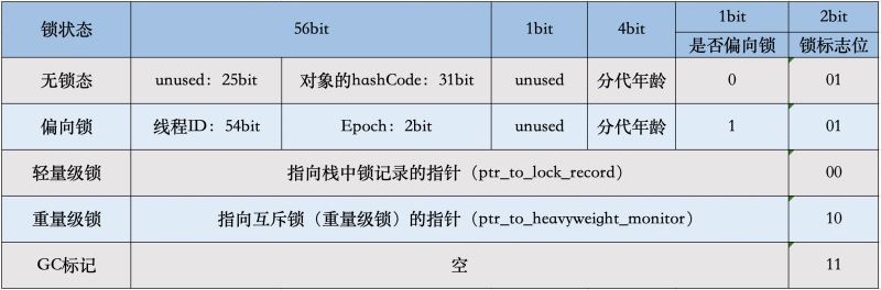 • biased_lock:是否偏向锁,由于无锁和偏向锁的锁标识都是 01,没办法区分,这里引入一位的偏向锁标识位。