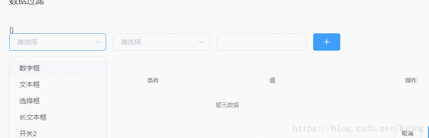 有这样一个需求 添加数据过滤用 左边是控件选择 中间是条件 右边是值