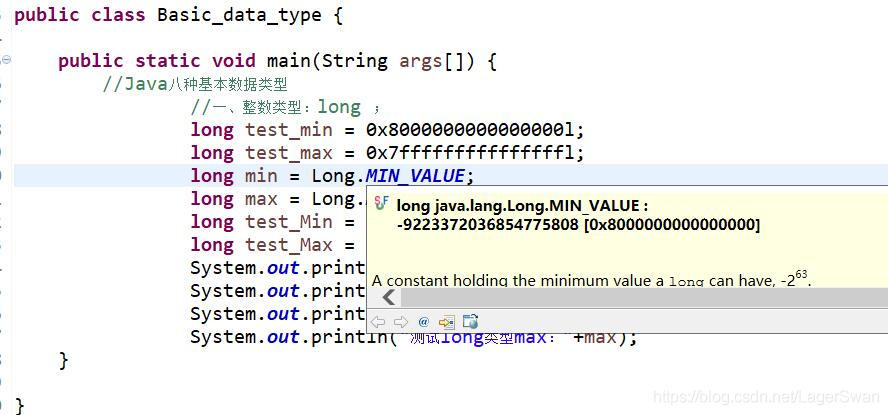 System.out.println("Long.MIN_VALUE = " + Long.MIN_VALUE);