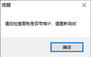 win32api.MessageBox(0, "请您检查复制是否带有IP,请重新测试", "提醒", win32con.MB_OK)