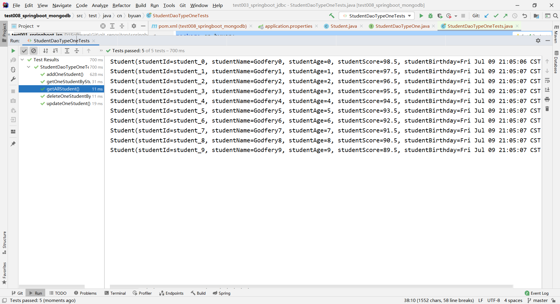 Student student = studentDaoTypeOne.getAllByStudentName("Godfery1");