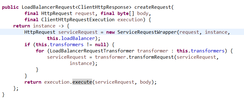 拦截器中就开始获取服务名,然后调用createRequest方法来将serviceName换成真实的IP