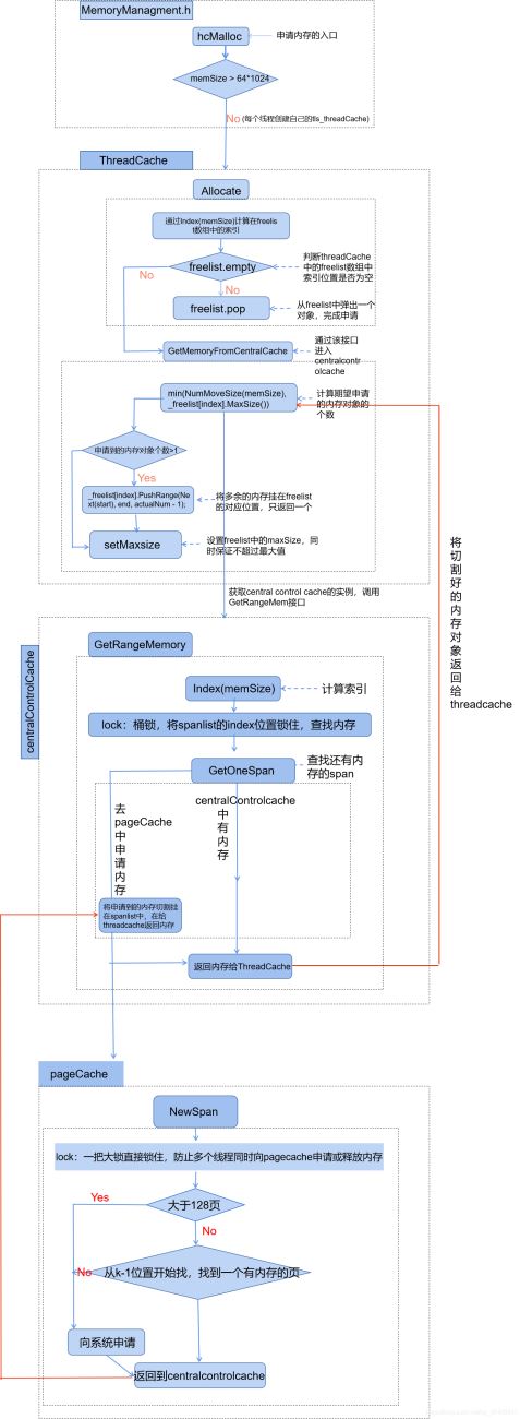 当thread cache中申请的内存大于64K时,直接向page cache申请。但是page cache中最大也只能申请128页的内存,所以当thread cache申请的内存大于128页时page cache中会自动给thread cache在系统内存中申请。