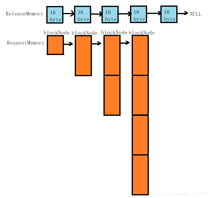 ReleaseMemory链表存储的是使用完释放回来的固定大小的内存块。