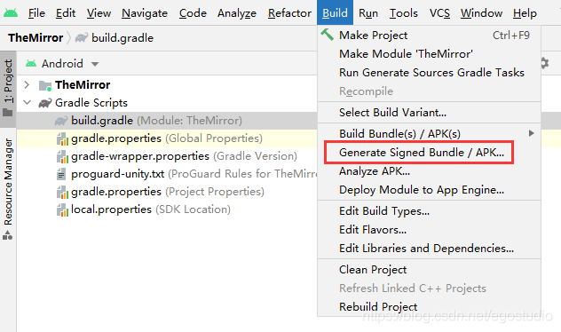 1、打开Android Studio工程,打开Build-Generate Singned Bundle/APK...选项