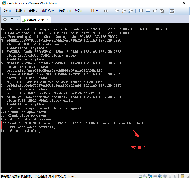 [root@linux redis]# ruby redis-trib.rb add-node 192.168.127.130:7006 192.168.127.130:7000