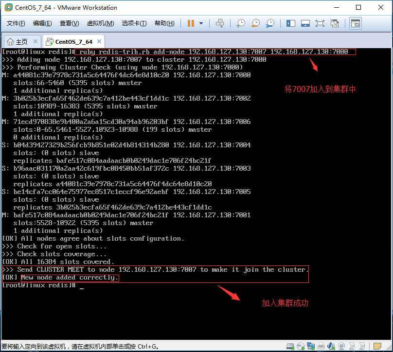 [root@linux redis]# pwd [root@linux redis]# /root/application/program/redis/ [root@linux redis]# ruby redis-trib.rb add-node 192.168.127.130:7007 192.168.127.130:7000