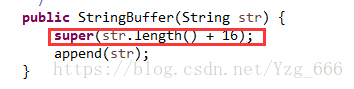 有参数的情况下,初始容量是16+字符串的长度,并且是用append()方法追加的字符。