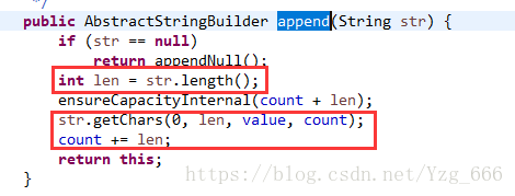 到这里就有疑问那,那这个字符串的长度是多少呢。是它本身的长度还是16+它自身的长度,来接着往下看。一路追寻append()方法终于找到答案了。