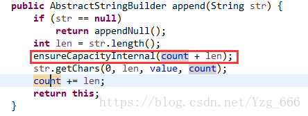 当调用sb.append()的时候每次都会对当前容量进行判断