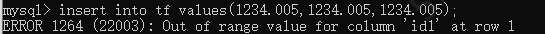 --向表中分别插入数据1234.005 mysql> insert into tf values(1234.005,1234.005,1234.005);