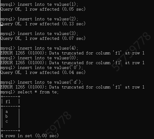 ENUM是忽略大小写的。还支持使用下标(从1开始,下标越界时报错)的方式插入数据。特殊值'0'表示一个空值。