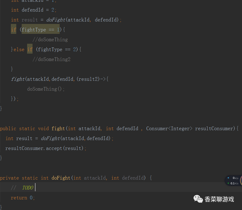 比如战斗的时候,需要根据战斗的类型不同,然后有不同的处理函数,在这时候可以使用Consumer,将每个单独的类型单独处理。避免了使用if