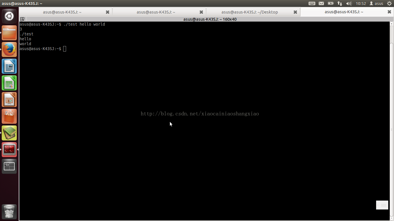对于上面的例子,我们将其保存为test.c,用gcc编译生成目标文件为test,测试如下: