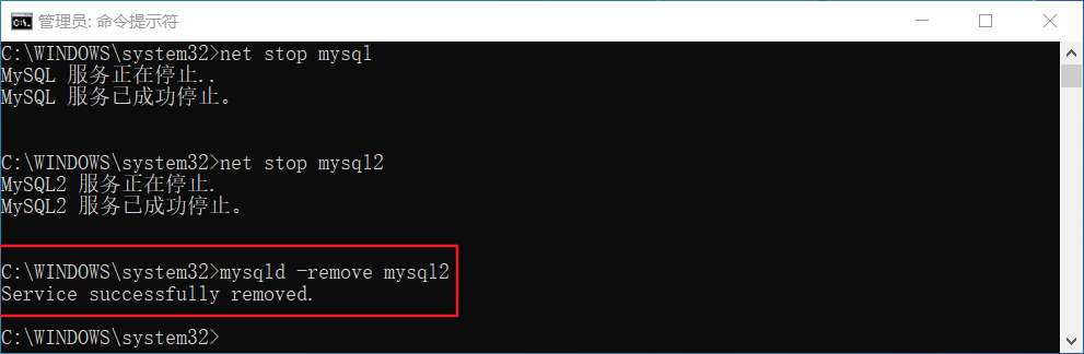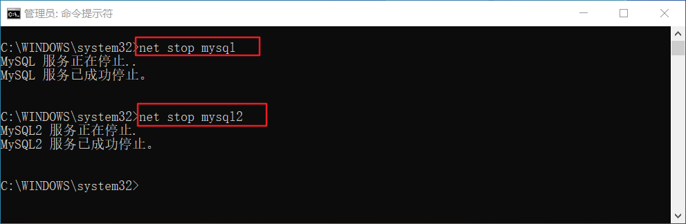 管理员CMD,输入net stop mysql,我开了两个服务,所以net stop mysql2