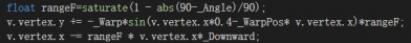 v.vertex.y += -_Warp*sin(v.vertex.x*0.4-_WarpPos* v.vertex.x)*rangeF;