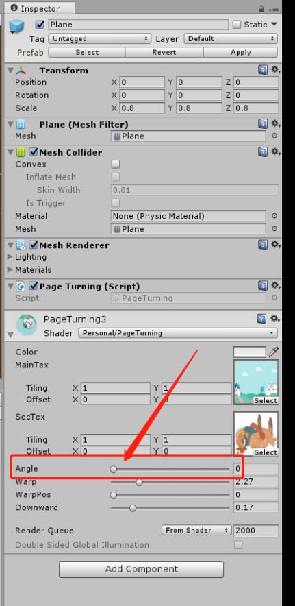 删除Plan,然后重新创建一个Plan添加材质球PageTurning2。