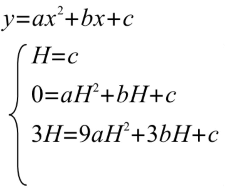 因此我们只要确定一个二次函数,我们就能得到轨迹。由于二次函数的通项有3个未知数,因此,我们只需要知道3个点就能确定一个二次函数。我们先假定我们的二次函数是这样的。