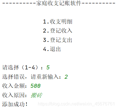 1.模拟实现一个基于文本界面(程序控制台)的《家庭收支记录程序》