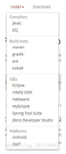 在Lombok的官网中,有一个install选项,我们点开它会看到多种安装方式: