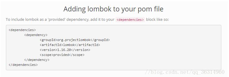 (4)、如果你无法访问Lombok官网,你可以从这篇博文中将Maven坐标照着自己打进去,或者你也可以访问Maven的中央仓库搜索Lombok,将Maven坐标复制进去即可。